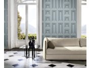 Vliesové luxusní modrá tapety na zeď se vzorem obkladů stěn vytvářejících 3D efekt.