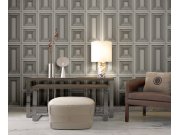 Vliesové luxusní hnědá tapety na zeď se vzorem obkladů stěn vytvářejících 3D efekt.