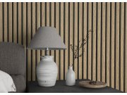 Kvalitní vliesové tapety s vinylovém povrchem a jemným krupičkovém povrchem, která věrně imituje lamelové obklad na zeď. Co vás zaujme: věrnost imitace dřevěných lamel. Design: moderní, eklektický, 3D. Úroveň tapetovéní: pro začátečníky. Země původu: Belg