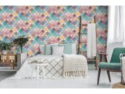 Vliesové tapety s vinylovém povrchem, jemná textura, vzor netradičního 3D obkladu v odstínech tyrkysové, fialové, modré a růžové. Co u vás zaujme: autentický vzhled, vysoká odolnost a omyvatelnost. Design: nadčasové, eklektický. Úroveň tapetovéní: pro zač