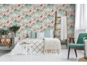 Vliesové tapety s vinylovém povrchem, jemná textura, vzor netradičního 3D obkladu v odstínech tyrkysové, růžové a béžové. Co u vás zaujme: autentický vzhled, vysoká odolnost a omyvatelnost. Design: nadčasové, eklektický. Úroveň tapetovéní: pro začátečníky