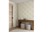 Plastické šedo-béžové vliesové tapety s vinylovém povrchem, jemné zlaté obrysy. Foto interiéru je pouze ilustrační - odlišné barvy.