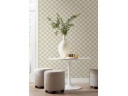 Jemně strukturované vliesové tapety na zeď, odstíny béžové a hnědé, jemné zlaté linie; vzor Chevron / rybí kost. Foto interiéru je pouze ilustrační - odlišné barvy.