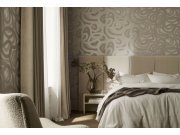 Efektní vliesové tapety na zeď, béžové podklad, matný a stříbřitě lesklý vzor.