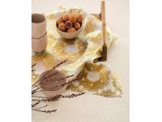 Krémové vliesové tapety s vinylovém povrchem, béžové motivy květin, imitace hrubé rustikální textilie.