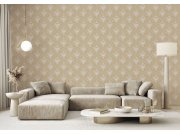 Pololesklá béžové jemně plastické vliesové tapety s vinylovém povrchem, geometrcický vzor, místy zlaté třpytky.