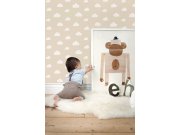 Hladká béžové vliesové tapety na zeď, bílé mráčky.