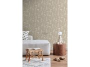 Béžové vliesové tapety s květinovém vzorem v odstínech hnědé, béžové, šedé a šedo-zelené.