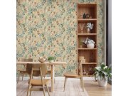 Tapety Yara » Béžová tapeta s květinami a ptáčky