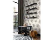 Béžové vliesové tapety na zeď, hnědé obrysy palem.