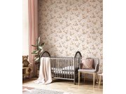 Šedo-béžové vliesové tapety na zeď, motivy lesních zvířátek a rostlin. Foto interiéru je pouze ilustrační - odlišné barvy.