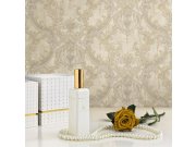 Luxusní béžové vliesové tapety s vinylovém povrchem, zlatý zámecký vzor. Foto interiéru je pouze ilustrační - odlišné barvy.