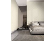 Vliesové tapety na zeď s vinylovém povrchem a geometrickým vzorem v krémově-bílých odstínech.
