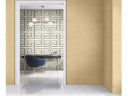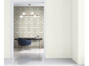 Luxusní vliesové tapety s vinylovém povrchem, smetanově bílá, plastický černo-zlatý geometrický vzor.