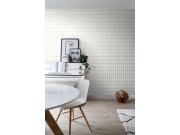 Vliesové tapety na zeď s vinylovém povrchem v bílých a šedých odstínech se vzorem pruhů.