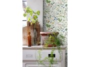 Bílá vliesové tapety na zeď, motivy lučních květin.