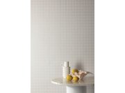 Luxusní bílá vliesové tapety s plastickým stříbrným geometrickým vzorem na podkladě imitující štukovou omítku. Foto interiéru je pouze ilustrační - odlišné barvy.