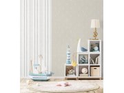 Vliesové bílá tapety na zeď s šedobéžovémi proužky.