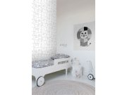 Hladká bílá vliesové tapety na zeď, jemně plastický vzorek ve stříbrné a černé.