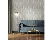 Vliesové tapety s vinylovém povrchem, bílo-šedo-stříbrný vzor ve stylu Art Deco.