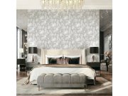Vliesové tapety s vinylovém povrchem, bílo-šedo-stříbrný vzor ve stylu Art Deco.