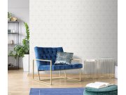 Luxusní bílo-stříbrná tapety na zeď s geometrickými ornamenty. Foto interiéru je pouze ilustrační - odlišné barvy.