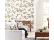 Bílo-zlatá květinová tapeta na zeď