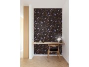 Hnědo-černá tapeta s květinami