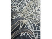 Matná černá vliesové tapety na zeď, prolisované lesklé krémové listy.