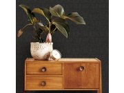Černá vliesové tapety s vinylovém povrchem, imitace látky. Foto interiéru je pouze ilustrační - odlišné barvy.