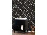 Černá vliesové tapety se zlatými puntíky.
