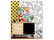 Hladká černo-bílá grafické vliesové tapety na zeď, motivy tváří, obličejů. Foto interiéru je pouze ilustrační - odlišné barvy.