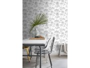 Bílá vliesové tapety na zeď, plastické černé obrysy listů.