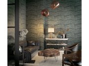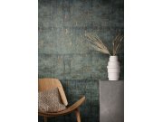 Luxusní černá vliesové tapety s vinylovém povrchem, imitace betonovéch bloků, prosvítající bronzové prolisy.