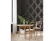 Plastické černá vliesové tapety na zeď, geometrický vzor, linie v barvě růžového zlata tvoří kosočtverce.