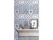 Vinylové tapety - Mozaikové vzor v šedé a černé barvě na bílém podkladu.