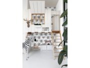Symboly: Čištění vodou, Tapety s dobrou stálostí na světle, Lepidlem natírat stěnu, posunout vzor, odstranění beze zbytku