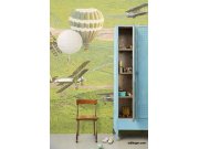 Pro ty, co mají hlavu v oblacích . Letadla a balóny se vznášejí nad zemí - obrazové tapety s vliesovém podkladem.