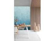 Modrá vliesové obrazové tapety na zeď, Moiré efekt. Pro větší šířku lze kombinovat s fototapetymi DG4MOI1031-300 a DG4MOI1032-300 - viz foto.