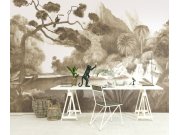 Vliesové obrazové tapety na zeď, vzor Majestic Garden, odstíny béžové, zelené, hnědé, červené. 8 dílů 53cm x 280cm. Tapety má navazující vzor, pokud potřebujete pokrýt širší stěnu, stačí přikoupit další kus (sadu 8 pruhů). Jednotlivé pruhy samostatně obje