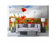 MS-5-0090 Vliesové fototapety na zeď Červený mák | 375 x 250 cm | červená, zelená, modrá, bíláZemě: ČR