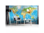 MS-5-0261 Vliesové fototapety na zeď Mapa světa | 375 x 250 cm | modrá, vícebarevnáZemě: ČR