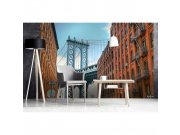 MS-5-0012 Vliesové fototapety na zeď Most v Manhattanu | 375 x 250 cm | šedá, modrá, oranžováZemě: ČR