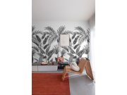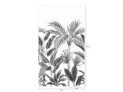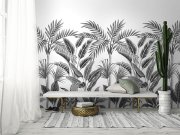 Vliesové fototapety s vinylovém povrchem, černo-bílý vzor tropických listů. 3 díly 53 x 280 cm. Tapety má navazující vzor, pokud potřebujete pokrýt širší stěnu, stačí přikoupit další kus (sadu 3 pruhů).