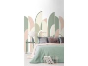 Geometrické vliesové tapety na zeď, trojúhelníky v odstínech zelené a bílé.