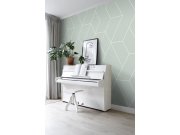 Šedo-zelená vliesové tapety na zeď, proplétané bílé linie tvoří 3D geometrické vzory.