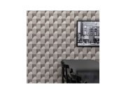 Šedá geometrické vliesové tapety s výrazným plastickým vzorem a 3D efektem.