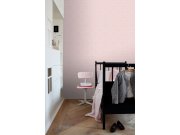 Vliesové, růžové tapety s bílým geometrickým vzorem.