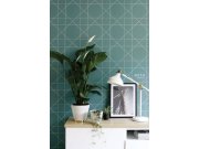 Vliesové, zelená tapety na zeď s bílým geometrickým vzorem.