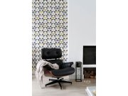 Vliesové, bílá geometrické tapety na zeď - vzor je v černé, hořčicové a šedé barvě.